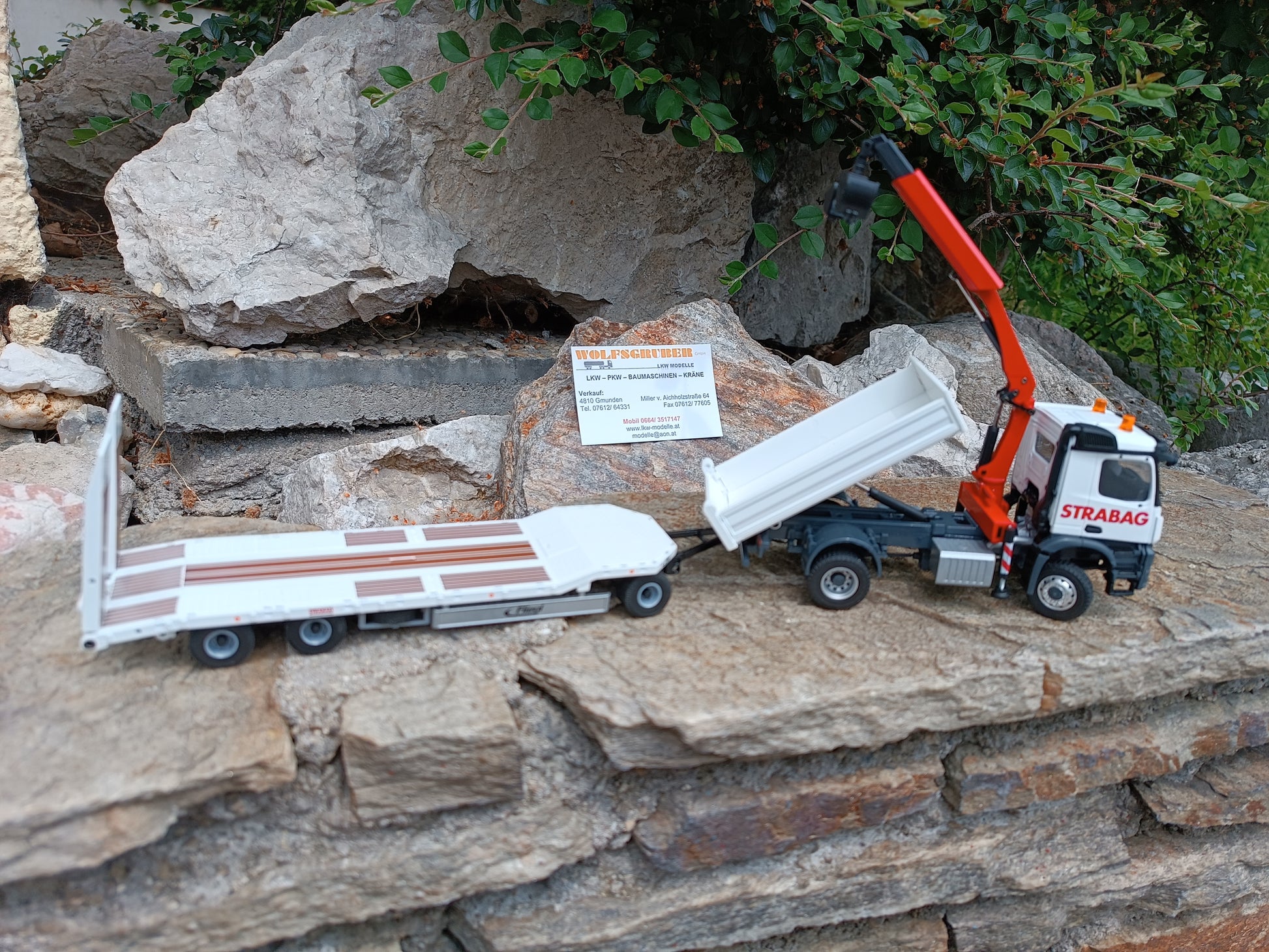 MB Arocs 2-achs Kipper mit Ladekran und 3-achs Tiefladeanhänger